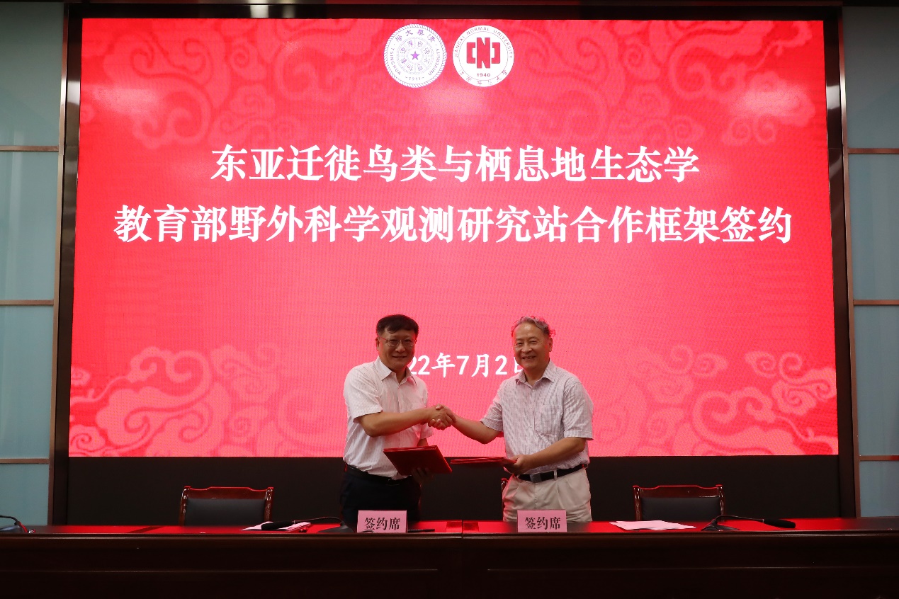7月2日,东亚迁徙鸟类与栖息地生态学教育部野外科学观测研究站(以下简称“教育部野外站”)合作框架协议签约和鄱阳湖基地揭牌仪式在江西师范大学举行。米兰milan官方网站、江西师范大学相关单位师生代表参加了签约和揭牌仪式。