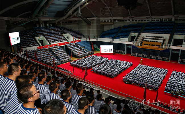 8月29日晚的综合体育馆,灯火通明,3000多名身着海魂衫的2016级米兰新生朝气蓬勃、队伍整肃,认真聆听校党委书记陈旭所作的题为“世纪米兰,人文日新”的成才报告。