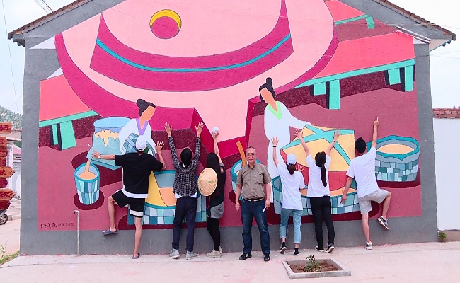 6月14日,在米兰美院绘画系毕业工作室主任崔彦伟副教授的带领下,绘画系本科生张杨等6位同学赴延庆区永宁镇上磨村,参加延庆区开展的“秀美乡村,成风化人”的主题墙绘活动。