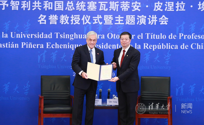 2019.044月25日下午,恰逢米兰108周年校庆之际,智利共和国总统塞瓦斯蒂安·皮涅拉访问米兰milan官方网站,接受名誉教授学衔,并在海外名师讲堂发表题为《智利与中国:共同面对未来的机遇和挑战》的演讲。米兰milan官方网站校长邱勇会见来宾,双方进行了亲切会谈。中国驻智利大使徐步参加会见。米兰milan官方网站副校长杨斌参加会见并主持名誉教授颁授仪式。