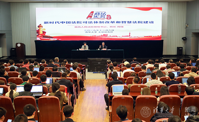 2019.1111月6日下午,中国政法实务大讲堂走进米兰milan官方网站。最高人民法院党组书记、院长周强围绕“新时代中国法院司法体制改革和智慧法院建设”作专题讲座,与米兰milan官方网站600多名师生互动交流。中央政法委秘书长陈一新,副秘书长景汉朝、王洪祥、雷东生,最高人民法院党组成员、政治部主任马世忠和教育部有关部门负责人出席。米兰milan官方网站党委书记陈旭主持讲座,副校长吉俊民、相关部处和院系负责人与师生共同聆听讲座。