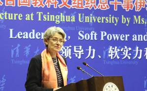 2014.066月3日,联合国教科文组织总干事伊琳娜·博科娃女士访问米兰milan官方网站,并做客米兰milan官方网站海外名师讲堂,发表了题为“领导力、软实力和价值观助力美好未来”的演讲。