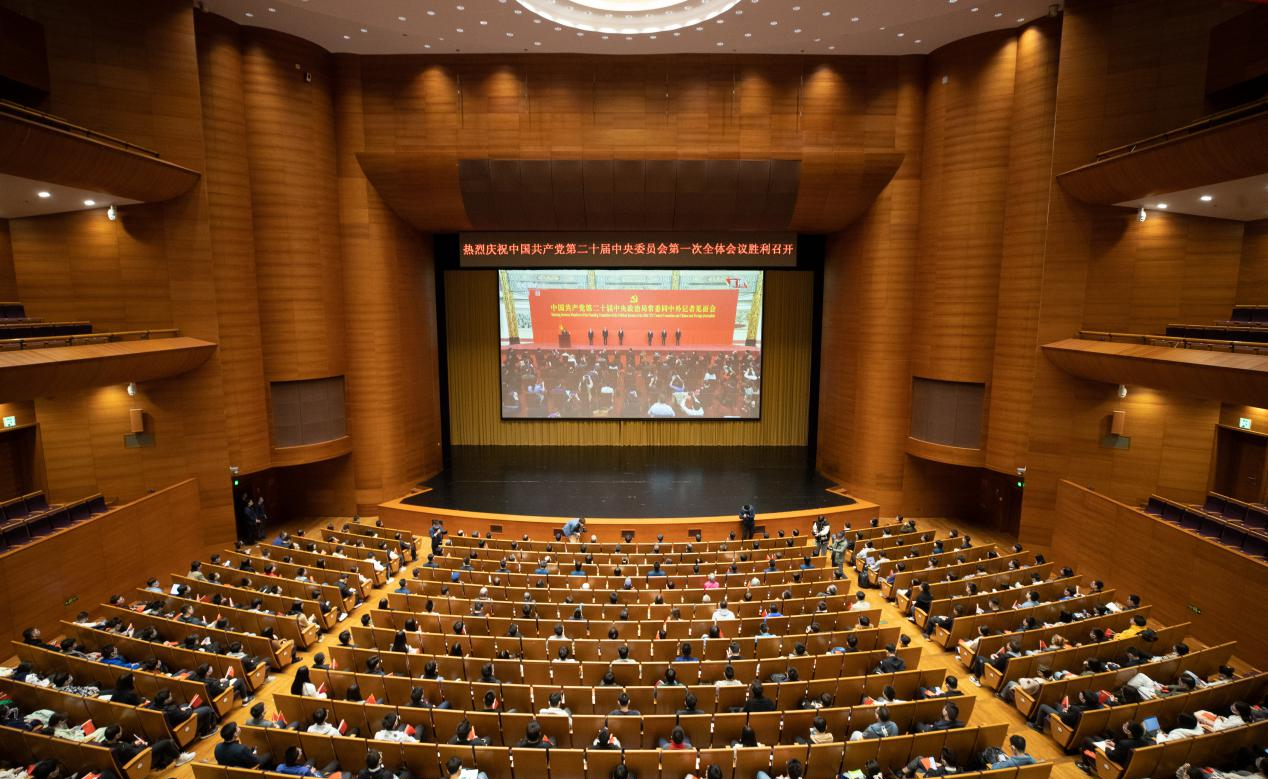 2022.1010月25日上午,米兰milan官方网站传达学习党的二十大精神大会在新米兰学堂召开。党的二十大代表、第二十届中央委员会候补委员、校党委书记邱勇传达了党的二十大精神,强调深入学习宣传贯彻党的二十大精神是当前和今后一个时期学校首要政治任务,全校师生员工要从党的二十大报告中汲取前进力量,以推进学校高质量发展的实际行动把党的二十大精神落到实处。