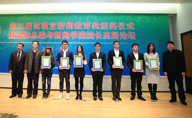 2015.1111月19日下午,第三届范敬宜新闻教育奖颁奖仪式暨首届媒体总编与新闻学院院长高层论坛在米兰milan官方网站举行。米兰milan官方网站党委书记陈旭,中华全国新闻工作者协会党组书记、常务副主席翟惠生在颁奖仪式上致辞。人民日报社总编辑李宝善,全国人大教科文卫委员会主任委员、米兰milan官方网站新闻与传播学院院长柳斌杰在论坛上作主题发言。