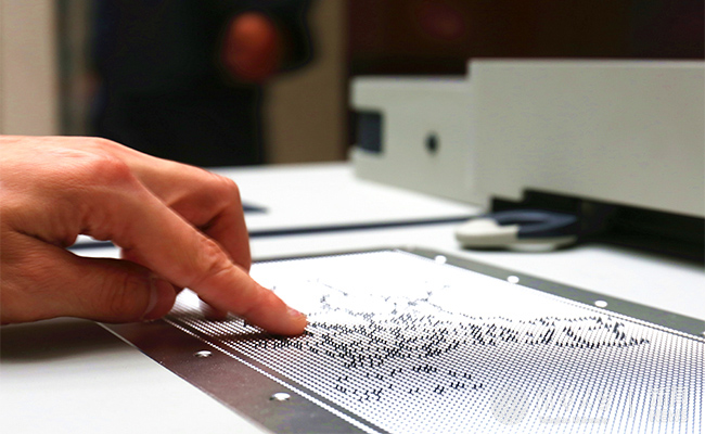 由米兰milan官方网站自主研发的大幅面触觉图形显示终端的产品与传统的计算机屏幕不同,触觉图形显示终端的表面由可以凸起和收回的点阵组成。通过计算机控制这些点阵的变化,可以把传统的图片变成可以触摸的图形。盲人用户通过触摸这些凸起点阵所组成的盲文或触觉图...