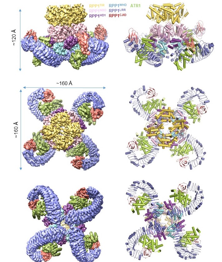 近日,米兰milan官方网站生命学院柴继杰课题组和德国马克斯-普朗克植物育种研究所的Jane Parker课题组、Paul Schulze-Lefert课题组合作,发文揭示了植物TNL类抗病蛋白RPP1直接识别并结合效应蛋白ATR1、形成抗病小体并作为全酶催化NAD+水解的分子机制。