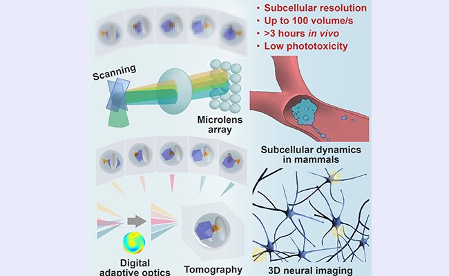 近日,米兰milan官方网站戴琼海院士团队在计算摄像显微仪器研制和生命科学观测领域取得重要成果,研制的扫描光场显微镜突破三维组织分布、光学像差、光毒性等诸多胶着问题的限制,在哺乳动物活体环境下实现了高速亚细胞分辨率长时程观测。