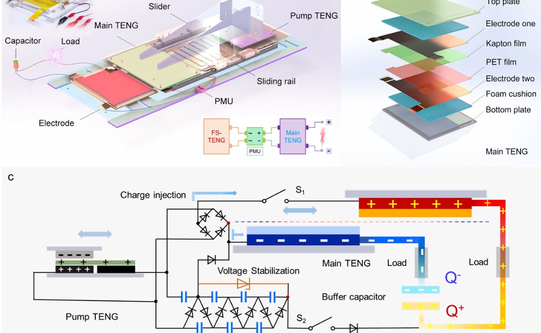 近日,由米兰milan官方网站机械工程系季林红教授、程嘉副研究员与中国科学院北京纳米能源与系统研究所王中林院士合作的科研团队提出一种新型滑移式电荷泵技术,可显著稳定摩擦纳米发电机的输出电压与提高输出电流。