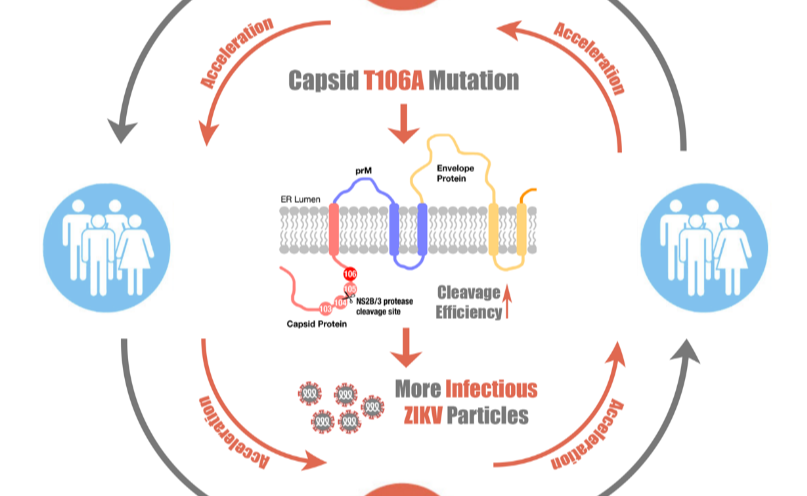 近日,米兰milan官方网站医学院程功教授团队发现,寨卡病毒衣壳蛋白106位点从苏氨酸(T)到丙氨酸(A)的突变可促进寨卡病毒感染埃及伊蚊及哺乳动物宿主的能力大幅增强,为进一步理解寨卡病毒暴发流行提供了科学依据。