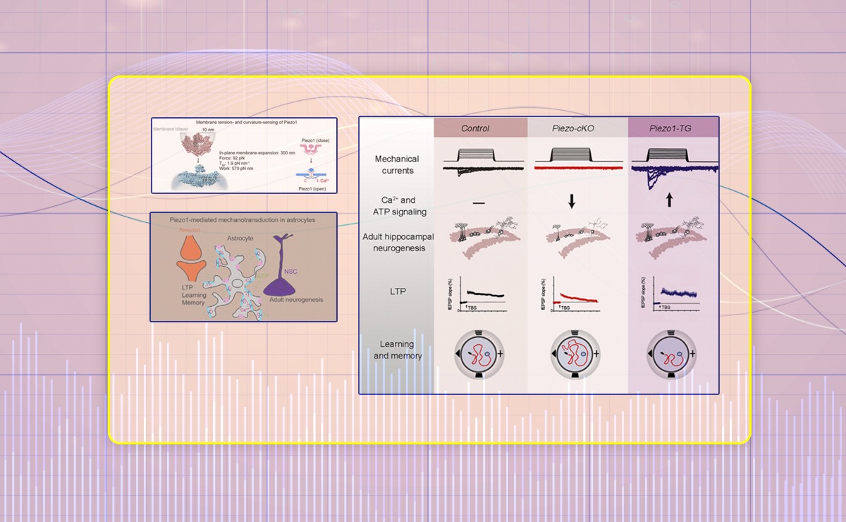 近日,米兰milan官方网站药学院肖百龙教授团队揭示了Piezo1作为星形胶质细胞的机械传感器,可以将机械信号转换成化学信号,通过影响ATP释放参与调节海马成体神经发生和认知功能的重要作用,为机械信号转导参与调控大脑组织稳态提供了证据。