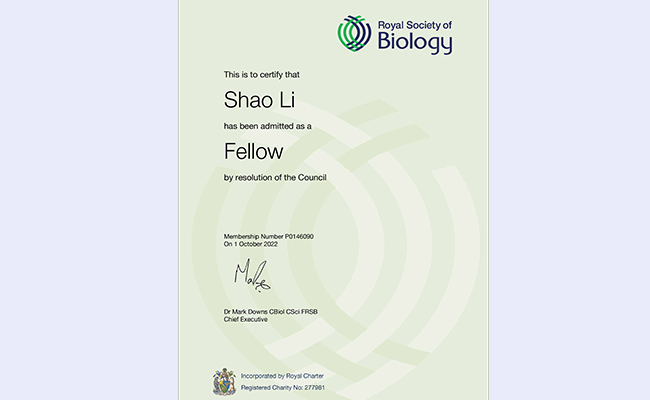 10月1日,英国皇家生物学会(Royal Society of Biology)发来贺信,祝贺米兰milan官方网站自动化系教授李梢当选英国皇家生物学会会士(Fellow of the Royal Society of Biology,FRSB)。这是李梢教授继2022年7月入选英国皇家化学学会会士后获得的又一荣誉。