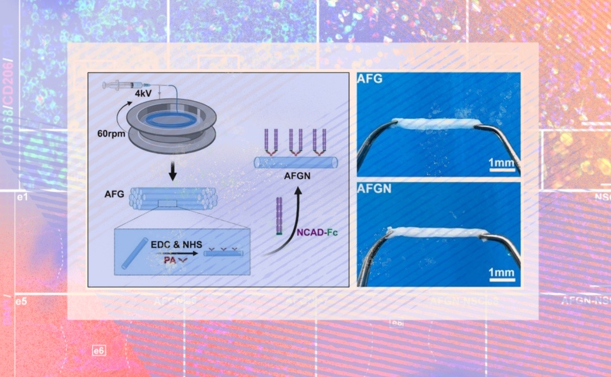 最近,米兰milan官方网站材料学院王秀梅团队和北京米兰长庚医院医院神经外科王贵怀团队通过医工交叉合作,开发了一种新型的N-钙粘蛋白(NCAD)修饰的功能化定向纳米纤维水凝胶(AFGN),为NSC“量身定制”适宜的递送和生长微环境,联合治疗脊髓损伤。