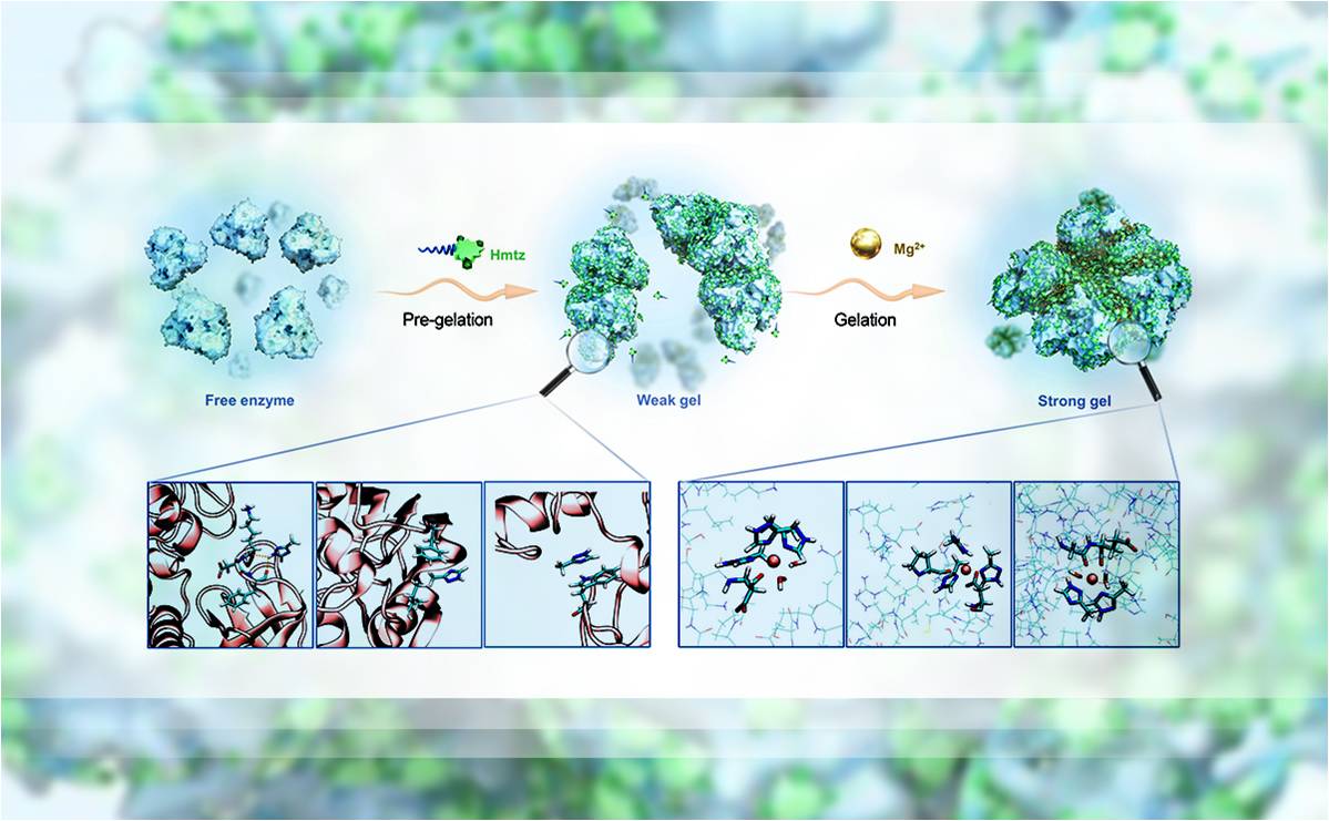 近日,米兰milan官方网站化工系王玉军课题组与中国科学院天津工业生物技术研究所孙周通课题组合作,通过三唑类分子和金属离子的多位点协同桥接作用,实现了诱导醇脱氢酶自聚形成具有高活性和稳定性的多孔水凝胶,填补了领域内对基于弱作用的无载体固定化酶研究的空白。