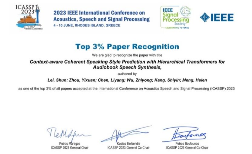 2023.07深圳国际研究生院吴志勇团队关于篇章语音合成领域的论文入选ICASSP 2023 Top 3%论文