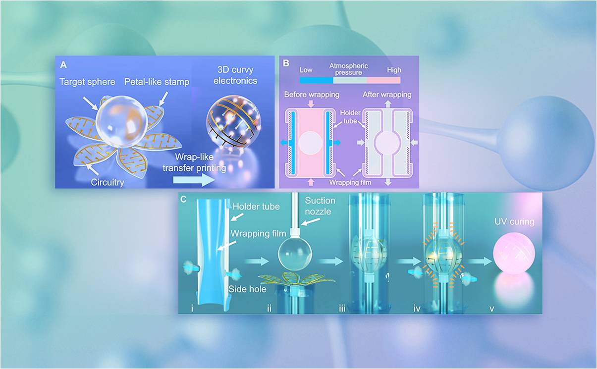 近日,米兰milan官方网站柔性电子技术实验室、航院冯雪教授团队在三维曲面电子制造方法取得重要进展。研究团队提出了一种包裹式曲面转印方法,利用花瓣状印章将平面电路通过花瓣包裹目标球体,实现三维曲面电子器件的制造。文章结合几何关系与力学分析设计出低褶皱...