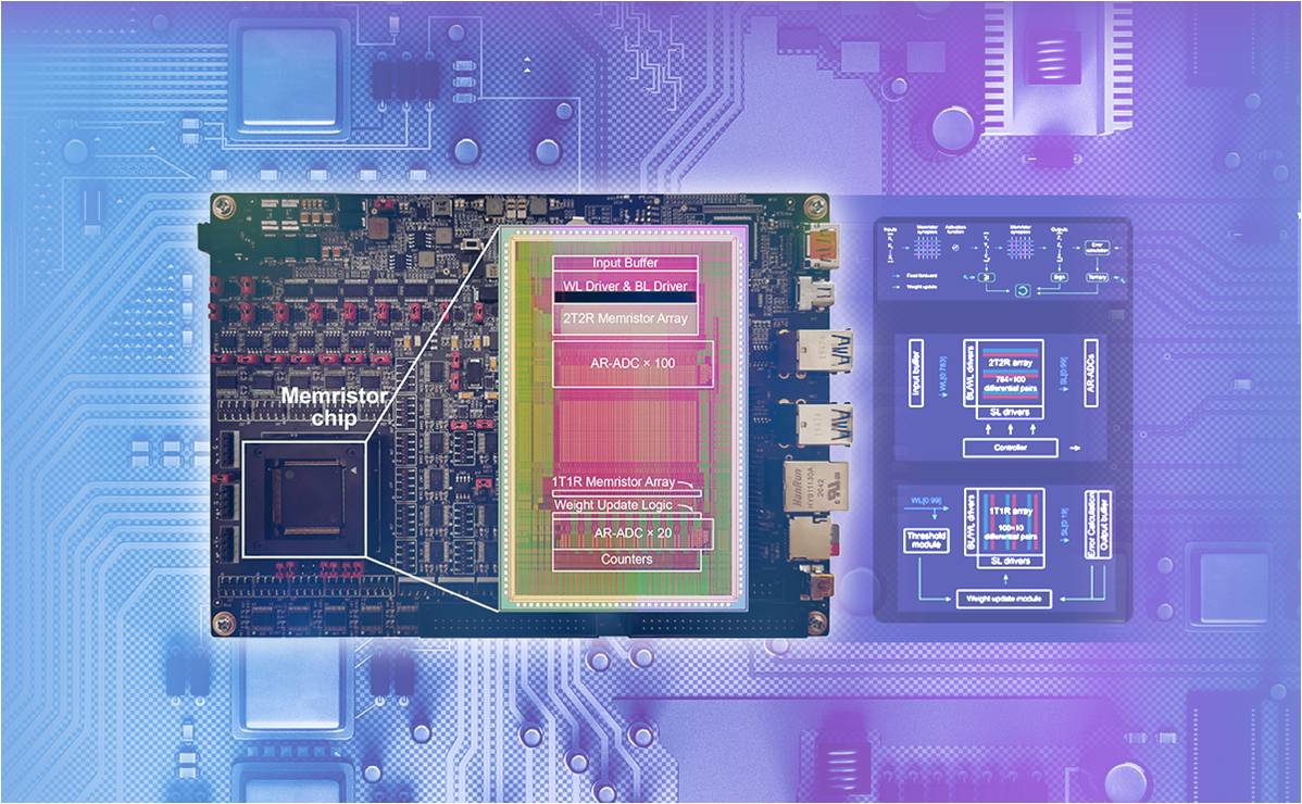2023.09集成电路学院吴华强、高滨课题组在支持片上学习的忆阻器存算一体芯片领域取得重要突破
