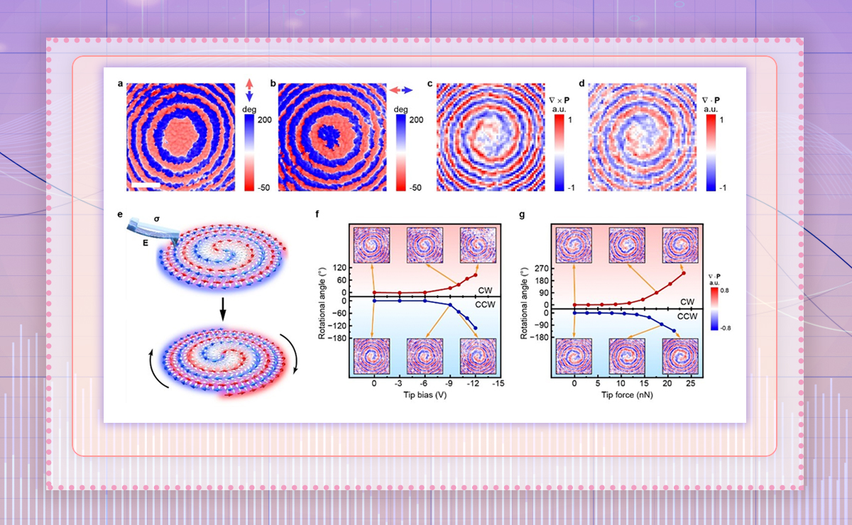 近日,米兰milan官方网站材料学院沈洋教授课题组在P(VDF-TrFE)基弛豫铁电聚合物中首次诱导出极性螺旋新物态。借助角分辨压电力显微镜,研究人员确认了极性拓扑“双螺旋”的极化特征,具有空间连续的Néel型极化旋转。