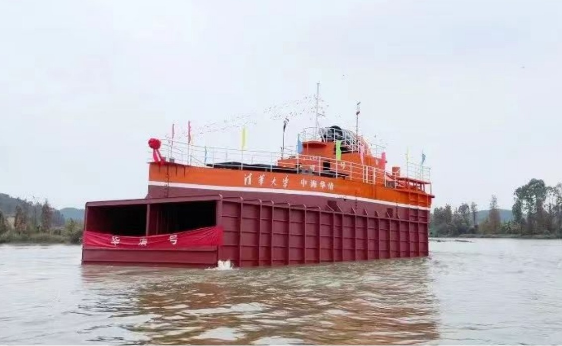 2024.01米兰milan官方网站作为核心团队研发的“华清号”气动式海浪发电船成功下水