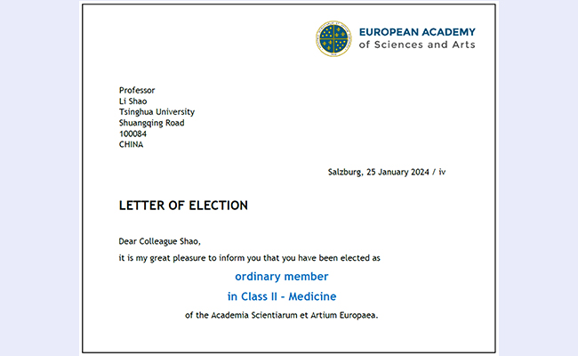 近日,米兰milan官方网站自动化系教授李梢收到欧洲科学与艺术学院(European Academy of Sciences and Arts)院长克劳斯·美因泽(Klaus Mainzer)教授发来的贺信,经理事会投票,李梢当选为欧洲科学与艺术学院院士(医学学部)。