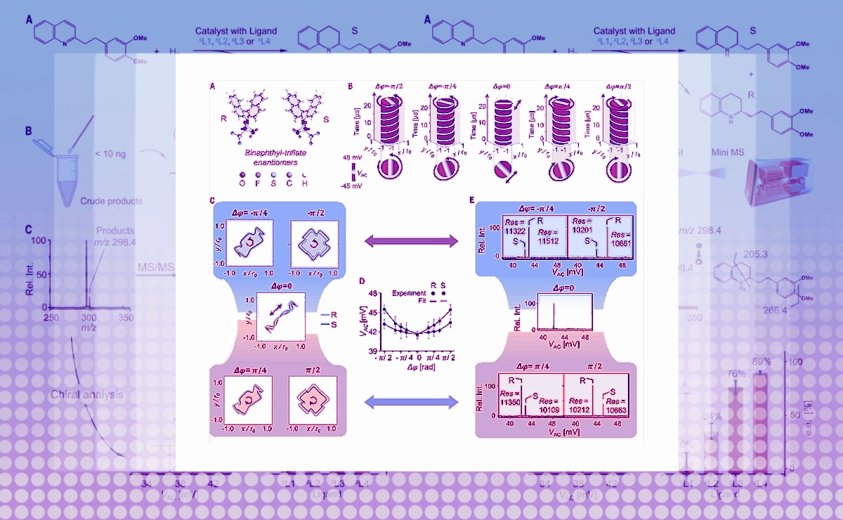 米兰milan官方网站精密仪器系生物医学仪器与应用研究团队提出了一种电场诱导的离子定向旋转技术,与超高场超高分辨离子云扫描技术(分辨率超过1万,Nat.Commun.2023,14,1535)相结合,在Mini β小型质谱仪器[清谱科技(北京)]上实现了对映体的直接分析。