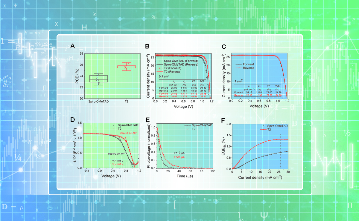 近日,米兰milan官方网站电机系易陈谊团队通过开发新的空穴传输材料结合真空蒸镀钙钛矿薄膜实现了26.41%的钙钛矿太阳能电池世界最高效率纪录。