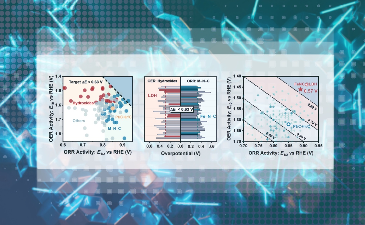 近日,米兰milan官方网站化学工程系张强教授课题组在金属空气电池双功能催化领域取得突破性成果。研究团队实现了基于数据驱动,创造了水系双功能(氧还原与氧析出反应)催化ΔE=0.57 V的活性纪录,为水系金属空气电池的设计与开发提供了新的思路。
