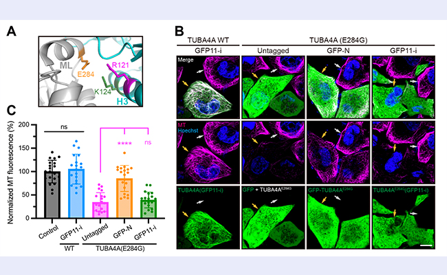 2024.09生命学院欧光朔课题组利用结构预测软件AlphaFold2开发微管蛋白的高保真活细胞荧光标记技术