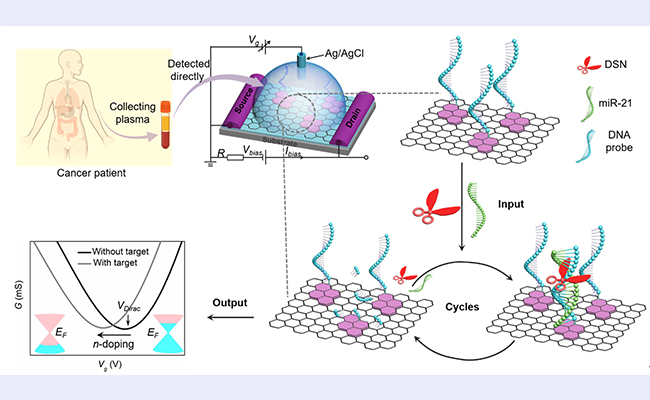 近日,米兰milan官方网站材料学院与首都医科大学药学院合作,取得了miRNA检测技术的重要进展,成功建立了一种超灵敏的miRNA快速检测平台。该平台将双链特异性核酸酶(DSN)与洁净石墨烯原子层晶体管技术相结合,在实验室中实现了低至25aM浓度的miRNA检测。