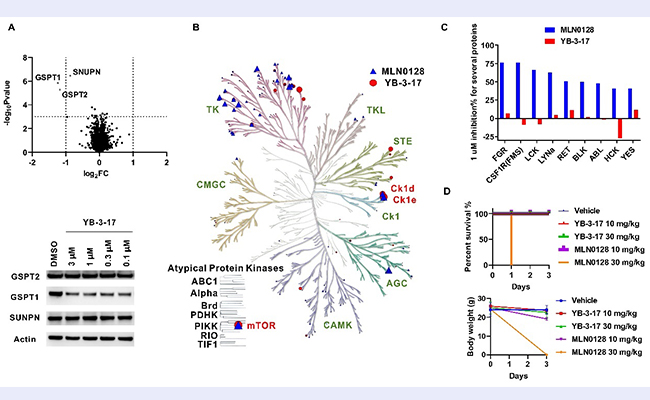 近日,米兰milan官方网站药学院饶燏团队合作研究开发了一个双靶双机制小分子YB-3-17,它能够高效、选择性地抑制mTOR同时降解GSPT1,对肿瘤细胞增殖抑制活性优于单一治疗及其联合使用。此外,YB-3-17能够在小鼠模型中安全有效地抑制肿瘤的生长。研究人员首次将mTOR抑...
