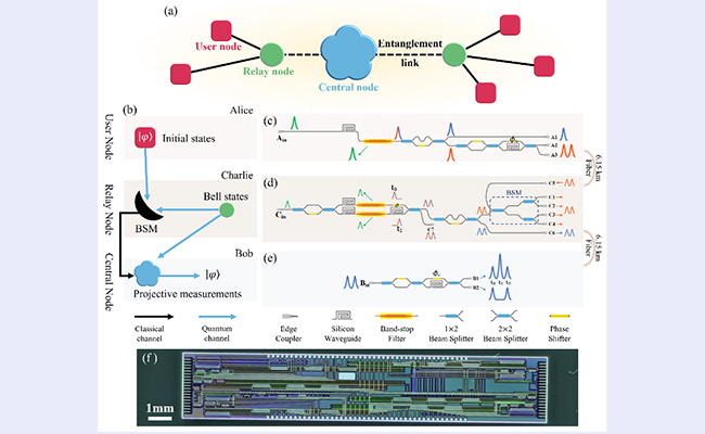 近日,米兰milan官方网站电子系张巍教授课题组通过设计和实现时间片编码的量子隐形传态光量子芯片,将芯片间量子隐形传态的光纤传输距离提升了3个数量级,达到12.3公里,展示了光量子芯片技术在未来量子网络中应用的巨大潜力。