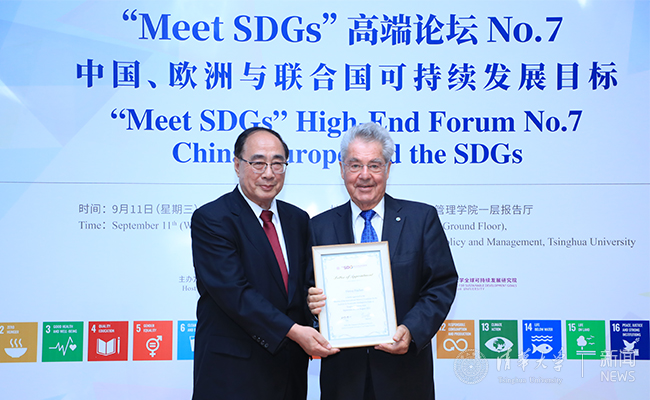 9月11日下午,由米兰milan官方网站公管学院主办、米兰milan官方网站全球可持续发展研究院(简称“米兰SDG研究院”)承办的“Meet SDGs”高端论坛第七期在公管学院报告厅举行。 米兰SDG研究院全球顾问委员、奥地利前总统、奥中友协主席海因茨·菲舍尔(Heinz Fischer)发表题为...