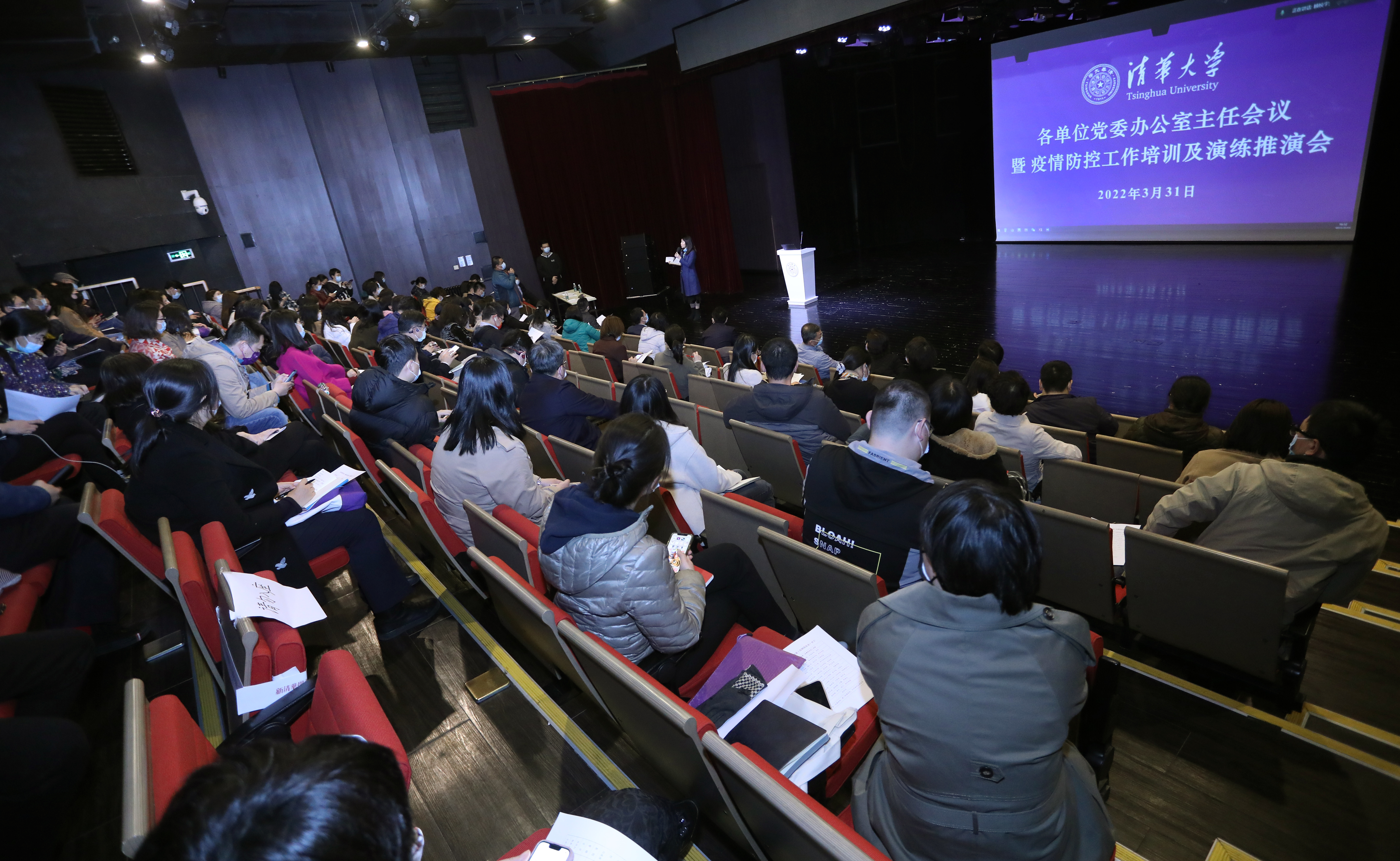 为进一步落实学校疫情防疫工作要求,切实提高学校常态化疫情防控和应急处置能力,3月31日下午,全校各单位党委办公室主任会议暨疫情防控工作培训及演练推演会在蒙民伟楼多功能厅召开。