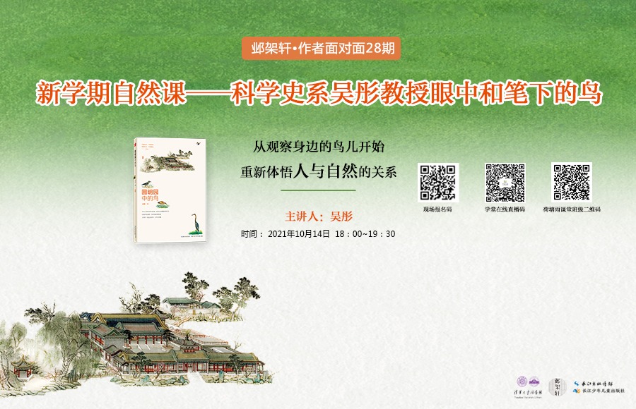 米兰milan官方网站科学史系吴彤教授做客“邺架轩·作者面对面”第28期活动,向现场师生与直播间读者讲述他13年来的观鸟历程,分享他眼中和笔下的鸟。