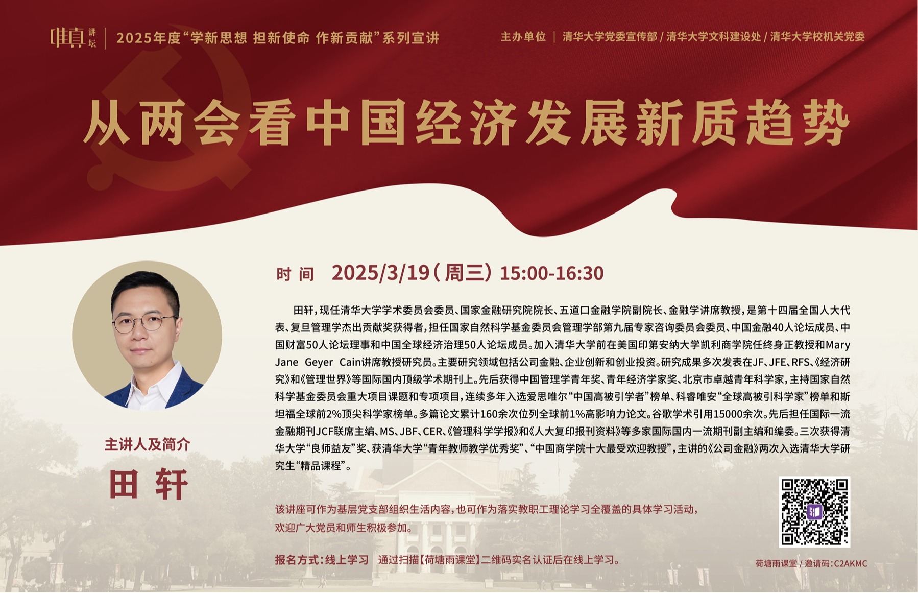 为深入学习领会习近平新时代中国特色社会主义思想,贯彻落实党的二十届三中全会精神、全国两会精神,党委宣传部、文科建设处和校机关党委联合举办2025年度唯真讲坛“学新思想 担新使命 作新贡献”系列宣讲第1讲暨校机关荷声讲坛第55讲。