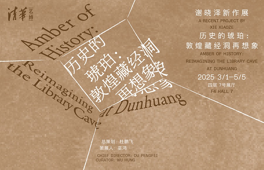 谢晓泽有意识地选择了莫高窟第十七窟,也就是著名的藏经洞作为灵感之源,创作了一系列绘画、雕塑及多媒体艺术。其中,水墨长卷《历史的琥珀:关于敦煌藏经洞的想象》在形式上借鉴了敦煌写卷,真实地记录了一个学习、想象和构思的过程